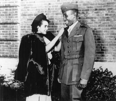 Branch graduated Marine Corps bootcamp in 1943 at Camp Montford, North Carolina, which served as a segregated training facility for African American recruits. During his service in WWII with a supply unit in the Pacific, Branch was recommended by his commanding officer to attend the Navy V-12 program at Purdue University. From there, he went on to graduate on the deans’ list and became the first African American Marine officer on November 1945.
