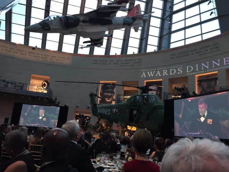 The Marine Corps Heritage Foundation Awards dinner was attended by WMA National President, Rhonda Amtower and her husband Jim, along with several WMA members. In attendance: Mitzi Manning, Sally Prichett, Sue Sousa, Eileen Scanlon and Ann Lane Crittenden