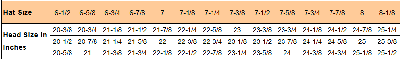 | Size: | 6-1/2, 6 5/8, 6 3/4, 6 7/8, 7, 7 1/8, 7 1/4, 7 3/8, 7 1/2, 7 5/8, 7 3/4, 7 7/8, 8, 8 1/8 |